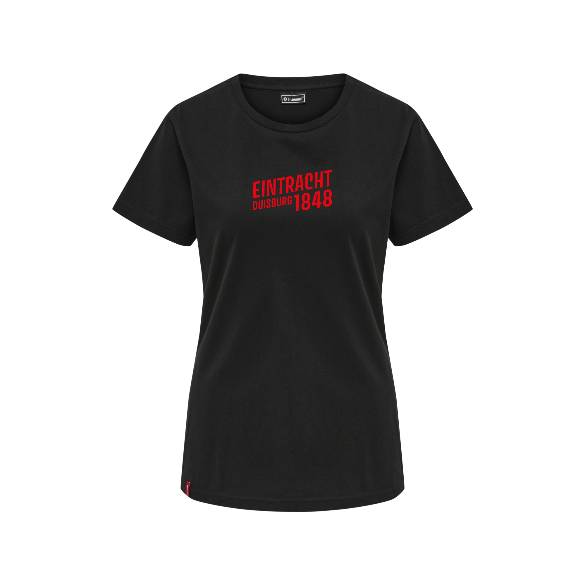 Das Logoetikett in Kontrastfarben am Saum rundet das Design ab.